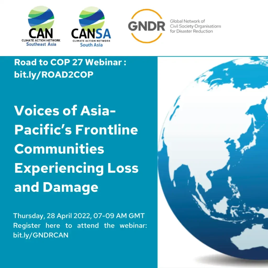 Dear CANSEA members, CANSEA, CAN South Asia (CANSA) and Global Network of CSOs for Disaster Reduction (GNDR) will conduct a joint webinar on: